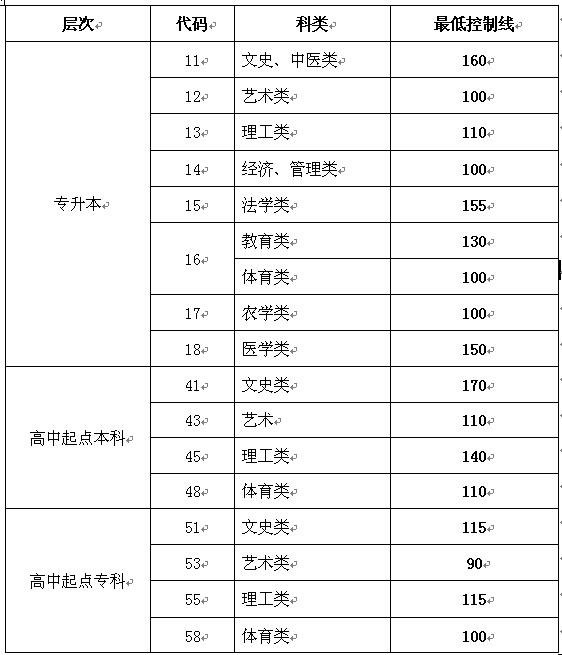 | 2015年山东省成人高考录取最低控制分数线 | ||